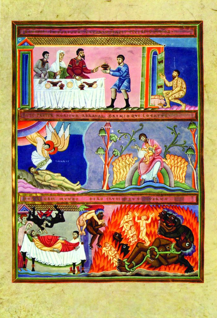 Iluminacija prispodobe o Lazaru i bogatašu iz rukopisa Evanđelja iz 11. stoljeća
